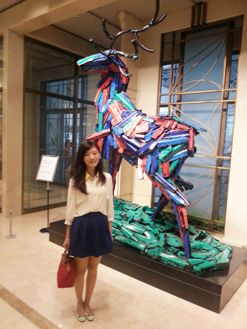 晚饭是在奥莱吃的,有各种美食可以选择。回去的路上又奇葩了,在2200车上有个美国女生上车居然想用信用卡刷卡。。。问了一下才知道她是跟团来的,但是后来想自己多逛逛结果脱了团,现在没有公交卡也没有现金(其实现在回想起来有点像骗子,但是我还是很单纯的相信了她),于是我和H替她出了公交车票钱。她很感激的送了我一她的头花。。。好囧。。。更囧的是,到了合井下了车之后她问我们在哪儿可以取钱,我们找了很多ATM都取不了,她非得说之前能取来着。不得已我又帮她买了张地铁票让她能回江南站,走的时候她才知道我不是韩国人,当知道我们是从中国来的时候,她叽里咕噜说了一大堆中国的好话。话说这次旅行是为了锻炼英语来的么。。