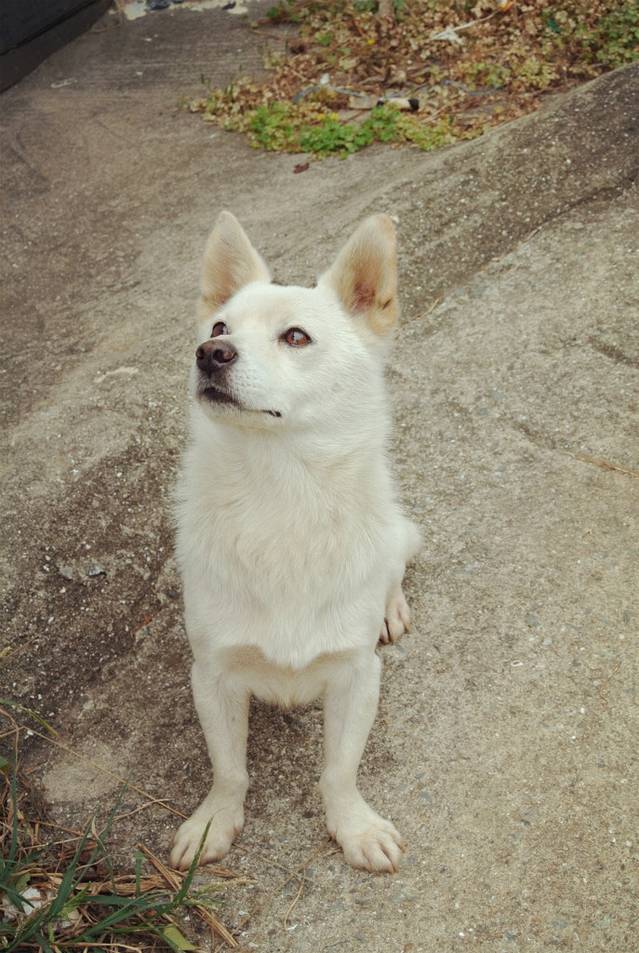 这只狗开始看到我疯狂的叫吓死我了。。。后来被主人教训了一下就温顺了。