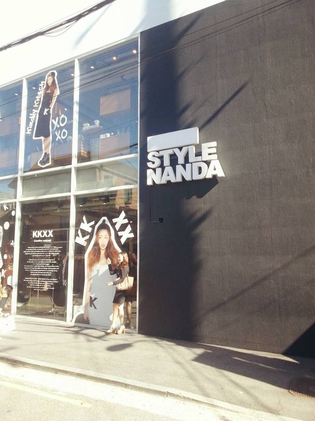 stylenanda大门,黑白就是有感脚~~ 门口有很多男伦等着老婆/女友大人逛街出来。其实stylenanda有点让人失望,阿索说3CE的口红很干不是特别好,我也觉得里面的衣服虽然很好看但是会贵一点(虽然我还是买了挺多吧。。),毕竟是买手店,后来在东大门也看到了同样款式同样质量的衣服,而且便宜,所以不爽。