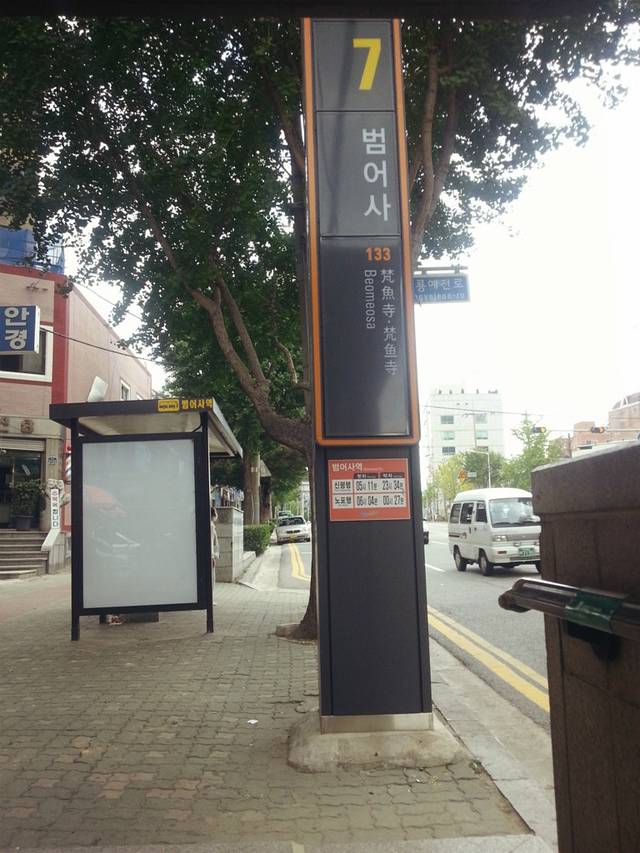 从海东龙宫寺出来,Mega说要去梵鱼寺,我们俩从青旅出门前她给我看梵鱼寺的图和名字来着,但是她给我看的是英文的,我当时查了一下韩语结果忘了。。。再加上海东龙宫寺那个地方连不上网,好抓狂。。于是打算先坐车回海云台。坐车的路上网络良好的时候随便搜了下,突然看到了梵鱼寺三个字,于是搜了一下梵鱼寺的韩语,再放到Naver地图里面定位。看上去挺远的,但是我们还是准备去拉,反正也没有事情干。