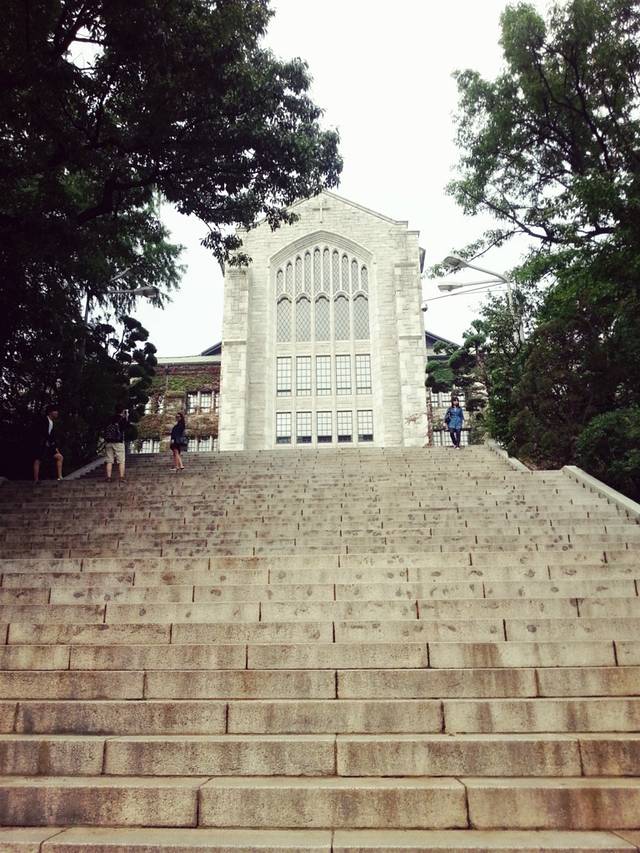 真不敢详细我又来梨大了,第一次来就觉得真的没啥可看的。上午送走了H童鞋,快到中午我和阿索才出门前往梨大,钟路三街地铁5号线到忠正路换2号线到梨大站2号出口出,直行徒步5分钟左右就到学校正门了。没有拍那个很俗的梨花墙,如果我有幸能抽空写写去年十月的那次旅行的话,倒是可以放两张很2的照片。我的韩语老师说,这个学校好多好多白富美呢,不是说学习好就能上的。