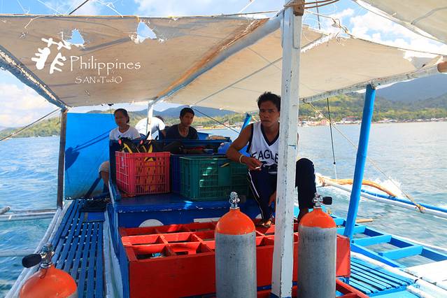 没有找岛上最有名的“sea dive”(lonely planet上推荐的那个)我们找的潜水店是通过之前几天的船家介绍的。老板是个韩国人,他们的船上都是韩语,当然水手们还是菲律宾人。谈好的价格便宜到惊人,一艘大船,配4个水手,深潜3次,外加去著名的湖泊,一共100美金。