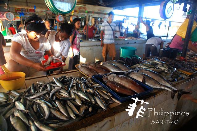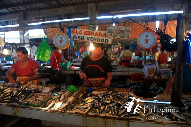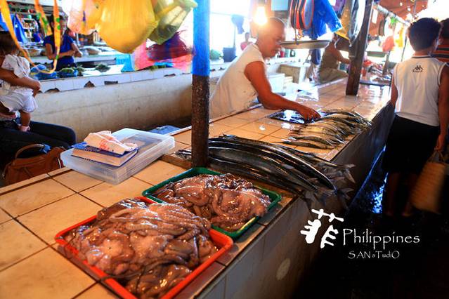 Coron的早市是繁忙而热闹的,中心市场其实不大,一排卖肉类,三排卖鱼类,旁边零星的杂货店出售水果蔬菜和干货等。