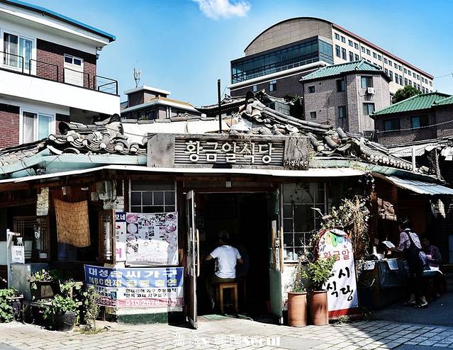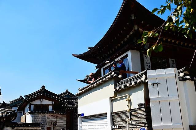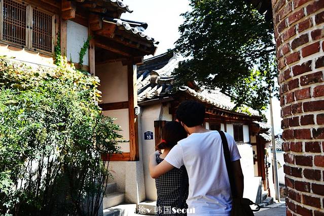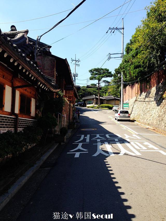 北村”是一片传统住宅区域,这里林立着贵族们曾经居住过的韩屋。首尔中心的朝鲜时代皇宫“景福宫”和“昌德宫”围绕在其周围。我们此行只是走了北村的小路,欣赏了古屋的外围,里面大多已经改成客栈,据说北村南边的“北村文化中心”,可以进到院子里看到房屋以及欣赏一些传统工艺的制作过程,同时里面有用视频和小模型介绍着北村的历史与魅力。去的同学到北屋建议不要错过。