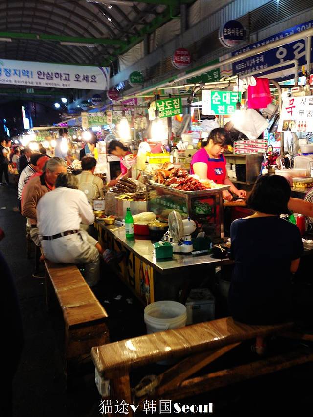 广藏市场也是摸索着进来,卖服装的摊位已经关门,剩下的就是卖特产和卖小吃的,围坐了很多当地人和游客,以后跟朋友来一定要来这里体验下路边摊。横穿过广藏市场后离东大门越来越近了,走了几站路的确有点儿累,但是一路走来都很热闹也就冲淡了疲惫,回到酒店休息期待下一天的行程。