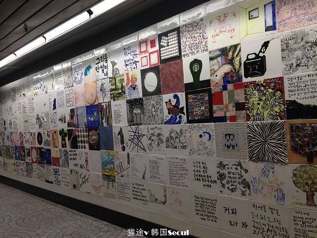 三清洞和仁寺洞是两个文艺气息很浓的地方,而可同时通向两个地方的地铁站里的艺术墙体现了本站特色。