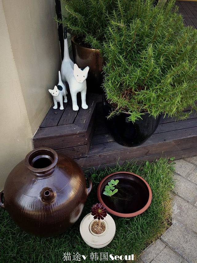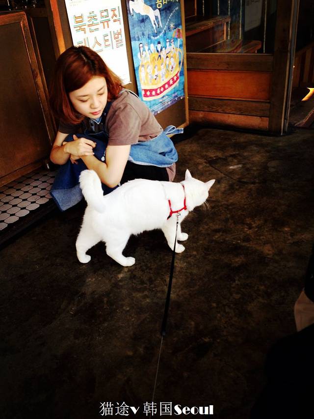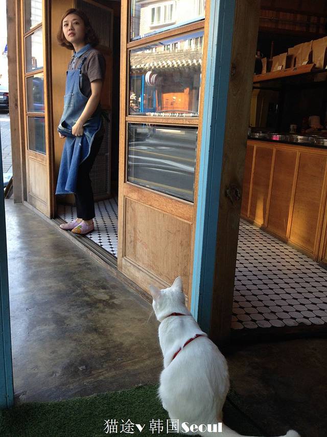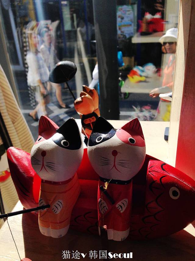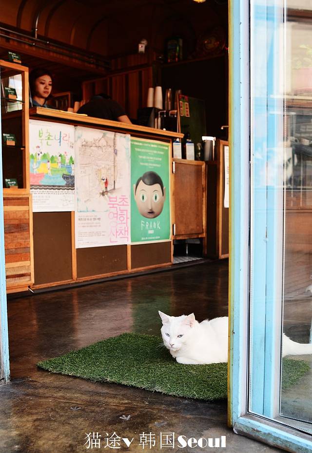 按照攻略上的指引出了地铁后我就迷路了。边走边看看看到了街角装饰用的白猫,然后看到了一家咖啡厅门口真正的白猫,进去喝了杯咖啡跟店主问了路,直接奔向离咖啡店最近的北村。我想我是被白猫勾引迷的路。