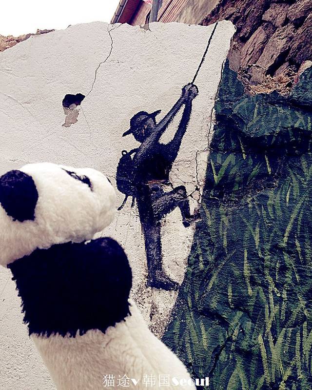 梨花壁画村老妈不太喜欢,因为要不停地爬坡,对她来说这只是一个山顶的村落,即便是到处都是充满艺术感的壁画涂鸦,也没有引起老妈的兴趣,但是我却和熊猫范英俊玩儿的很happy。