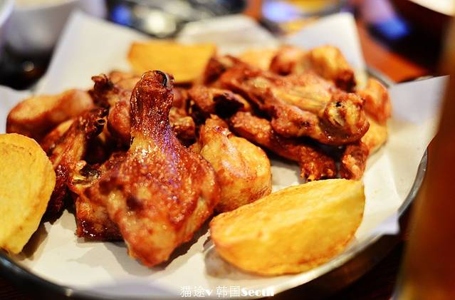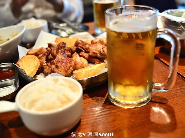绕过清溪川后带着老妈往东大门酒店走,路过了一条繁华的小吃街,选择了一家位于二楼的啤酒炸鸡店,环境很好应该都是当地人光顾。