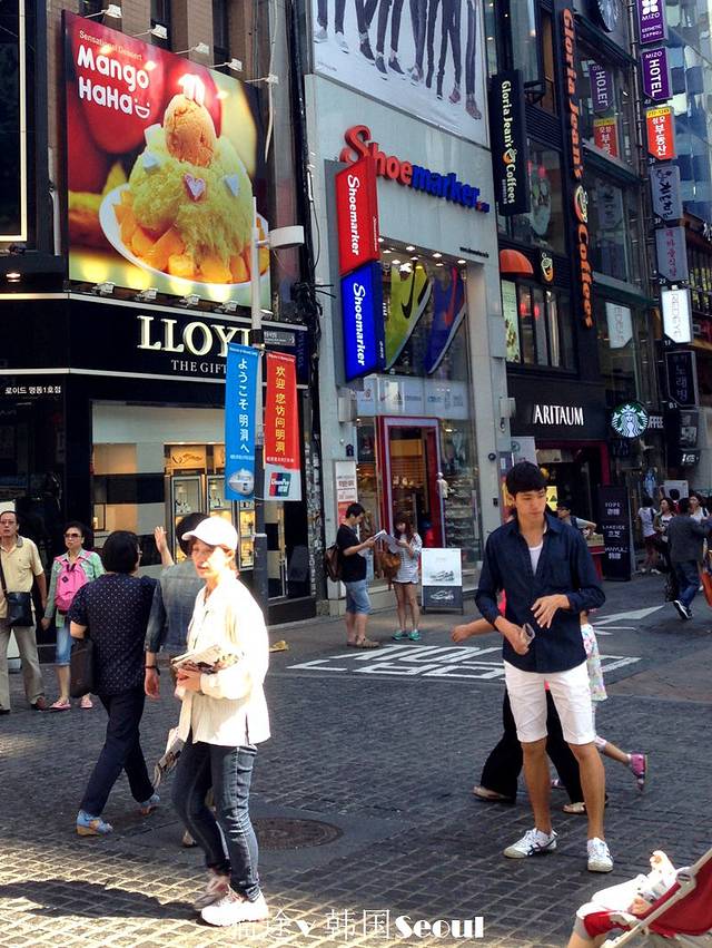 明洞是换钱吃饭购物的好去处,类似北京西单,帅哥美女满街是,店里导购基本都会中文满大街的张罗,韩语中文随意切换,这里小店很多在韩国一大特点就是各家店里基本上看不到一模一样的衣服,如果你在一家看到就下手吧。