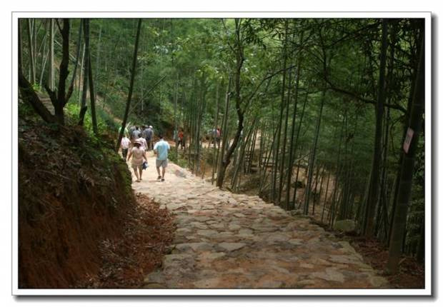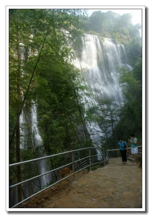 人们沿着石径一直往山上走,途中有人开始往回走了。问他们看到瀑布没,说还有15公里。立即有人泄了气。15公里肯定不可能,那得走上半天时间。一个景点不可能设置成让游客走那么长的时间。于是我们继续前行。没走多远,又见有人回返,再问看到瀑布没,说看到了,的确不错。问还有多远,回答说大概只有200多米了。