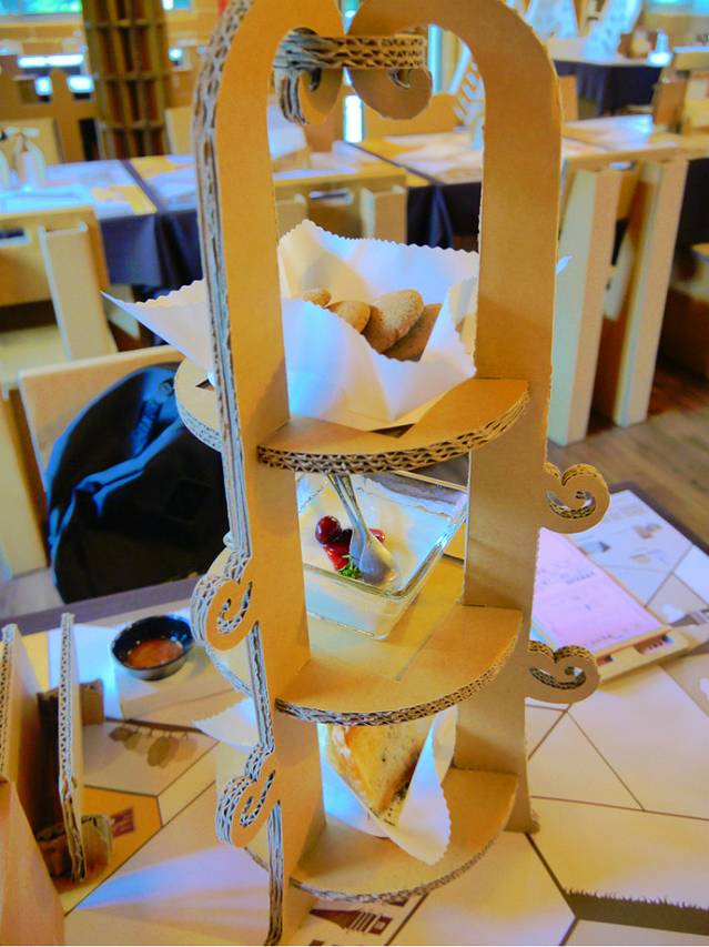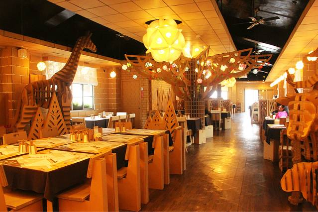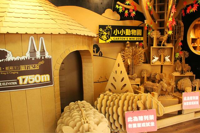 纸箱王餐厅,是一个非常有创意的园区,餐厅里所有的桌椅摆设,甚至餐具,全部是用纸做的,消费满NT300还可以获得小瑞士 花园的门票一张。