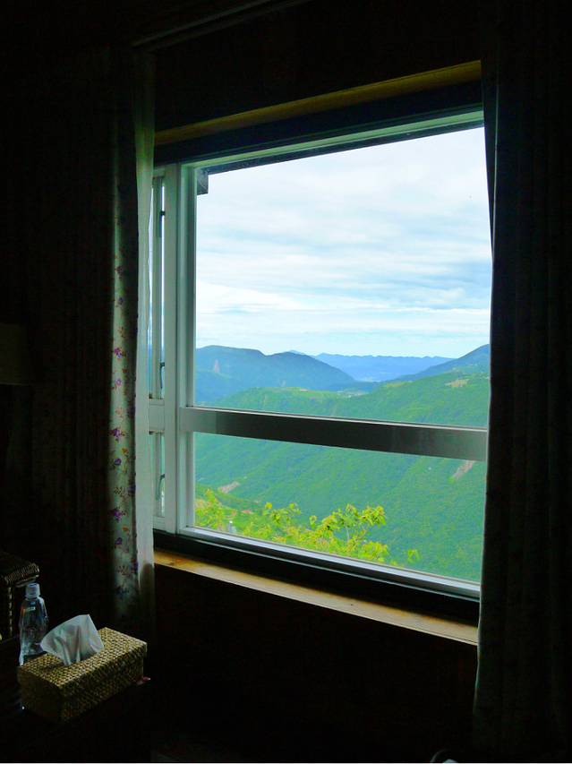 2、云顶山庄(从 疯台湾民宿网上预定),去清境农场的朋友可选择的民宿有一百多家,大家可以在这个网站上慢慢选择:http://www.fun-taiwan.com/ ,要是自己坐车去的话,有点远,还要转车,拖着行李的话会不太方便,我们是通过民宿联系租车去的,从台北搭乘高铁到台中,师傅在高铁站接我们,是一辆小中巴,车上还有别的乘客,也是去清境的,直接会把我们送到民宿的门口,价钱是台币450每人,想要租车的话,直接跟预定的民宿联系就可以了。云顶的房间很大,窗户外面就是大山,观景一级棒,还有浴池可以泡汤。