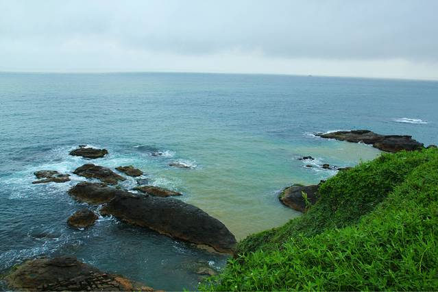 回程的路上,司机师傅专门带我们来看“阴阳海”,就是海面呈现的两种颜色,黄色部分是金瓜石上留下来的黄金水。