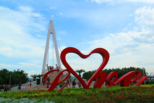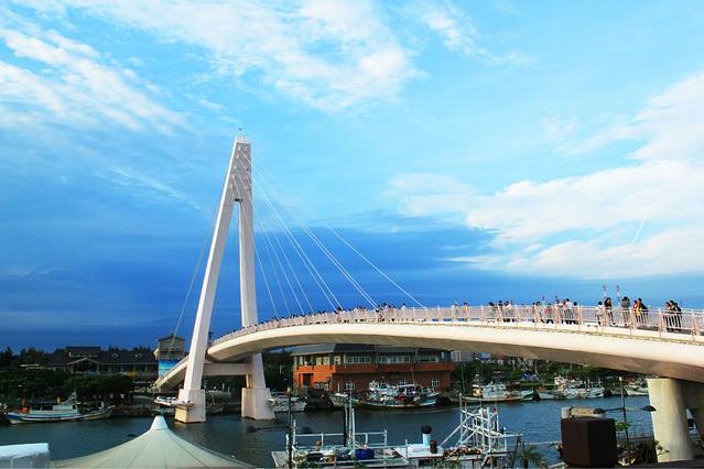 坐淡水线然后下了捷运坐公车26路可以到渔人码头,时间充裕或者可以选择租自行车,迎着风,在情人桥上等着淡水最美的夕阳,可惜天气好得太阳不舍得下山,让我们好好享受一下港口的阳光吧。