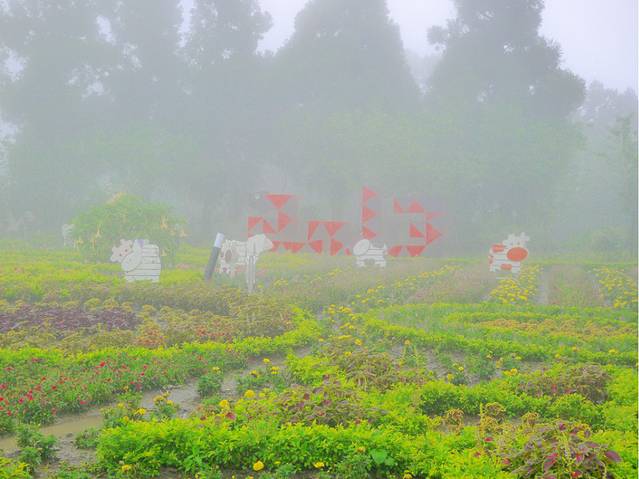 纸箱王附近的瑞士小花园也因为下雨蒙上了大雾 。