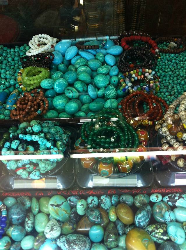 大昭寺周围的应该是最繁华的商业圈了,虽然陈旧,可依然繁华,(八墎街)。现代化的商业圈可以到北京路一条路上。当地大多是四川人在这里做生意,因此拉萨也有小四川之称。在八墎街最多就是这些小珠宝店了,如果有喜欢这些的,可以买点,当作个纪念。