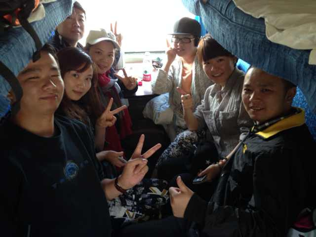 一路上跟隔壁卧铺的小伙伴玩游戏,两天两夜很快就过去啦。。。(请原谅我闭着眼睛还来剪刀手。。)