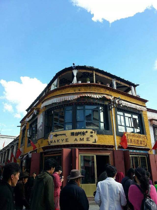说到食物特产,在拉萨一定要喝当地的甜茶,大大小小的甜茶店遍地都是,这里喝甜茶的习惯不亚于广东喝茶。比较热闹比较有打表的应该是光明茶馆了,虽然看起来比较陈旧,但是代表了年代悠久。地址在大昭寺广场出来右边100米左右,周围都是商圈。拉萨的耗牛肉干也不错。去林芝的一定要去试试当地的石锅鸡,味道很地道。跟着大昭寺人群走,这家叫玛吉阿米的菜餐厅不错,不过要错开用餐高峰期不然要排队。。。