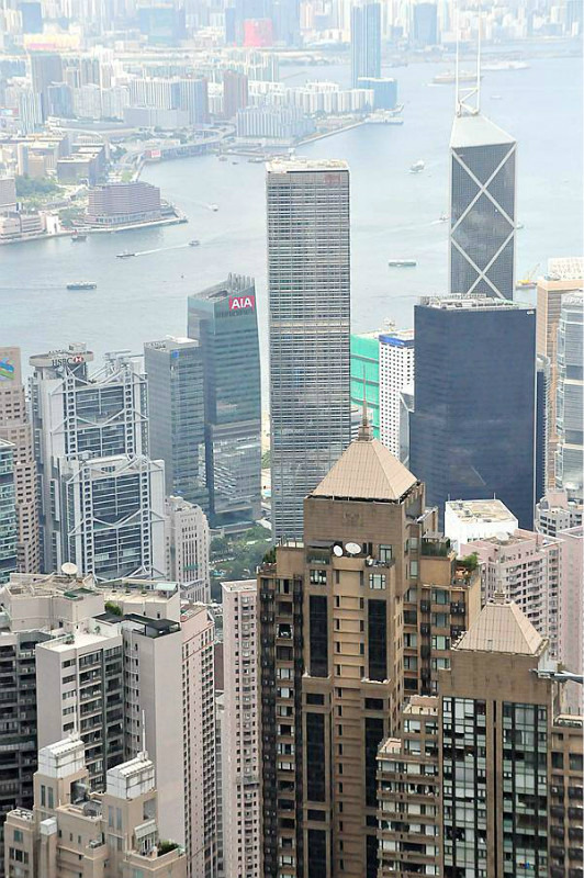 不到一个小时的时间就到达了九龙市区,第一站是九龙圆方,我在第二站佐敦下,等红灯的时候正好看到香港标志性建筑,位于中环的国际金融中心二期和中国银行大厦,顿时有点小兴奋,心中默念,香港我又来了!!