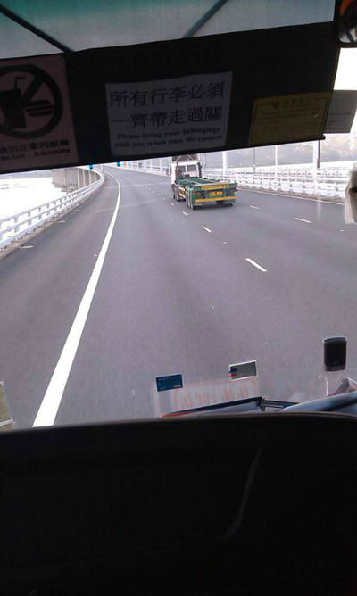 过关时间大概花了半个小时(视人流量情况来定),过了出境大厅后,在门口找到21或者22号停车位,再上另外一辆中港通巴士,此时就要再出示车票。