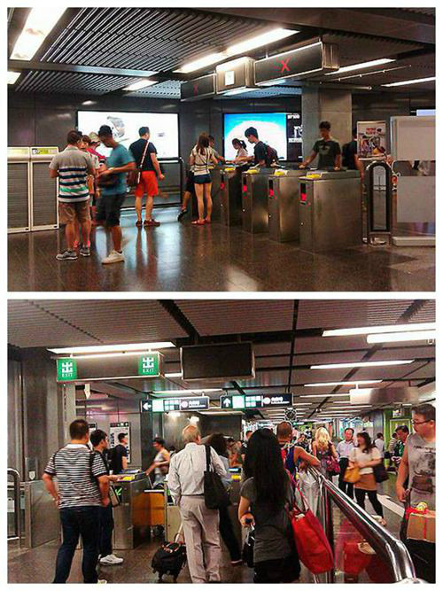 闸口入口处都注明八达通与持票证通行的通道,标识清楚,人性化之一。
