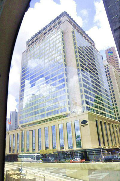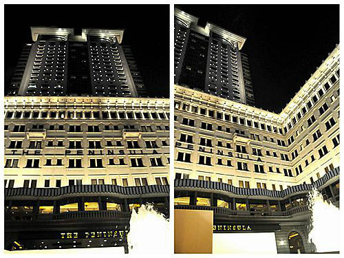 香港半岛酒店,位于尖沙咀梳士巴利道上,与汉口道交界处,酒店正对维多利亚港。