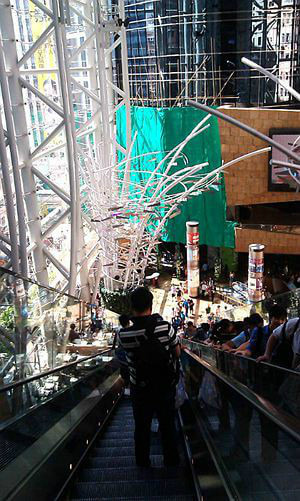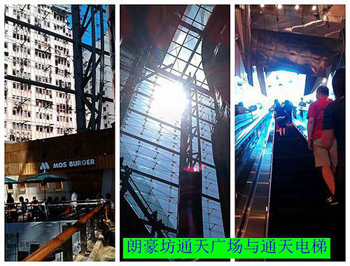朗豪坊通天电梯,是香港最长的商场扶手电梯之一。入到朗豪坊商场后,先坐手扶电梯到通天广场,然后就会看见通天电梯,通天电梯分两节,第一节4到8层,第二节8到12层,两节电梯长为83米、是全香港最长之无承托室内扶手电梯,目的是疏通人流,把游人以最快的时间走到每一家商店。