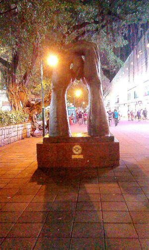 回酒店途经位于尖沙咀九龙公园旁边的柏丽购物大道,握手铜像也是在港剧中看见过了,不过是N年前的了。