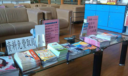 中港通20分钟发一班车,时间没到,先在沙发上坐着等,顺便可以看看杂志,候车大厅的杂志和地图都是免费领取的。上车前工作人员会给每个人发一瓶水和一份香港地图。