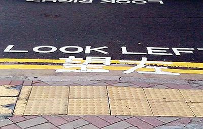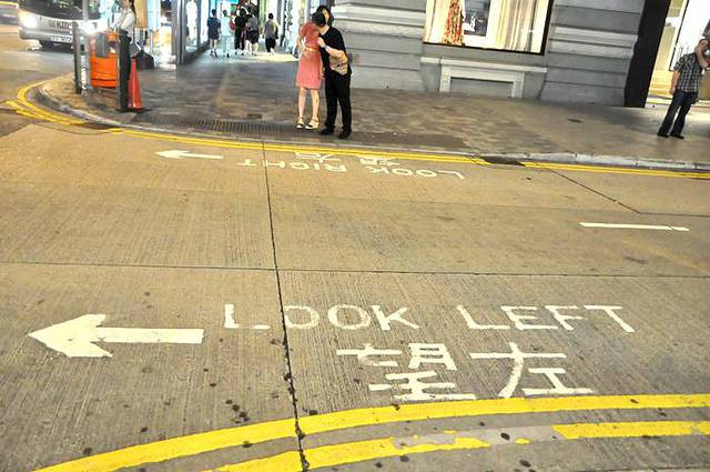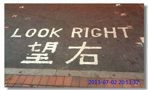 香港的道路,在路口地面上都写有“望左”或者“望右”标识,便于行人安全过马路,多么人性化!!赞一个!!!
