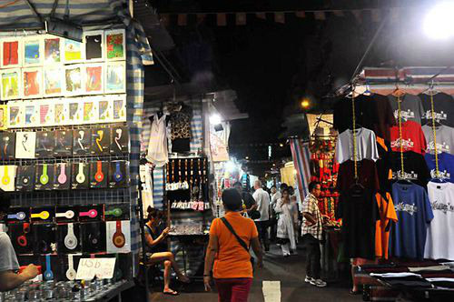 庙街,也叫男人街,被喻为香港的平民夜总会。每天从今晚时分开始,庙街路边的摊档便会陆续开始营业。售卖的物品相当多元化,包括男性服装、手工艺口、玉器、廉价电子产品等 。