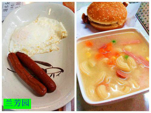 早餐A:有双蛋双肠加火腿通粉。