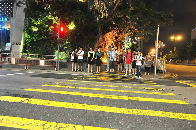 回酒店的路上沿着梳士巴士道,穿过广东道路口,正好等红灯。