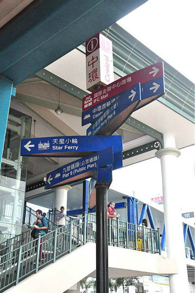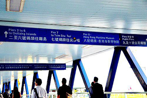 往左是去湾仔码头,往右去中环码头,坐船的时候要看清楚哦。