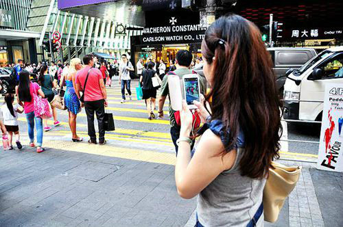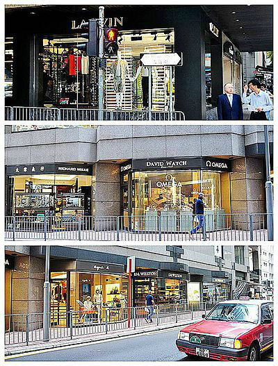 沿着德已立街、皇后大道中、毕打街,到置地广场找地方坐坐,正好下班时间,看到很多高级白领下班,男的打领带,女的正装配高跟鞋,还有些穿得知性的,男的帅,女的靓,形形色色的,好一片靓丽风景线,只是不好意思对着人家拍照。
