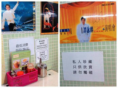 凡是兰芳园的店内全都是谭咏麟的海报。