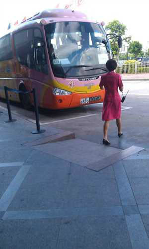中港通20分钟发一班车,时间快到了,有服务小姐带领客人上车,就是门口不远处。
