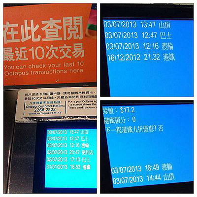 八达通不记名,不会过期,常用的分为三种,分别是成人卡,小童卡,长者卡。小童卡是年龄在3至11岁的小孩,长者是年龄在60或者65以上的老人,我们肯定就是买成人卡咯。八达通不能多人用一张 ,需每人购买一张,因为同时用的话拍一次卡以后要五分钟才能再拍一次。本人出发前一个星期在淘宝上购买了八达通,人民币125元/张,面值港币150元(其中押金50元,可用额度100元),根据每个人的用量和用法,我在两三天里中途充了50元港币才够,余额用不完可以在地铁站退的,押金不足三个月扣9元。八达通还可以透支,透支最多港币35元,但透支只能一次。