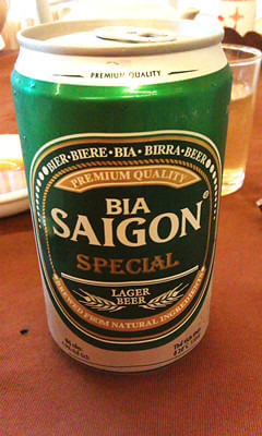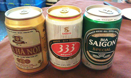 三种越南啤酒,从左到右价格为5元,6元,7元。后来决定喝7元那种。