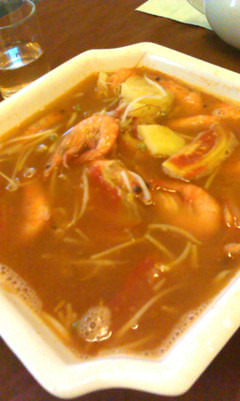 酸虾汤是越南菜的代表,鲜美开胃,保证你看一眼就会垂涎欲滴,味道酸甜可口,令人开胃,材料有大虾、菠萝、豆芽、西红柿等。虾的份量特别多,而且特别新鲜。