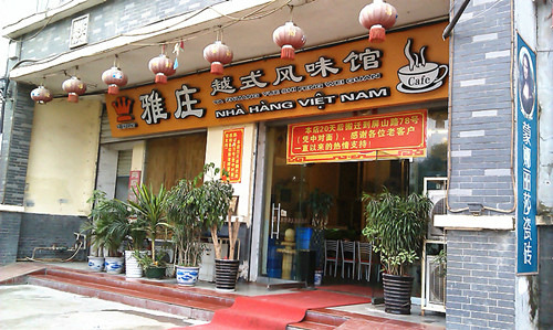 来到了网上唯一推荐的凭祥最好的越南菜馆,雅庄越式风味馆,店老板,厨师,服务员可都是正宗越南人哦,包括所有原材料和制作方法,无一不是越南的,如假包换,够正。