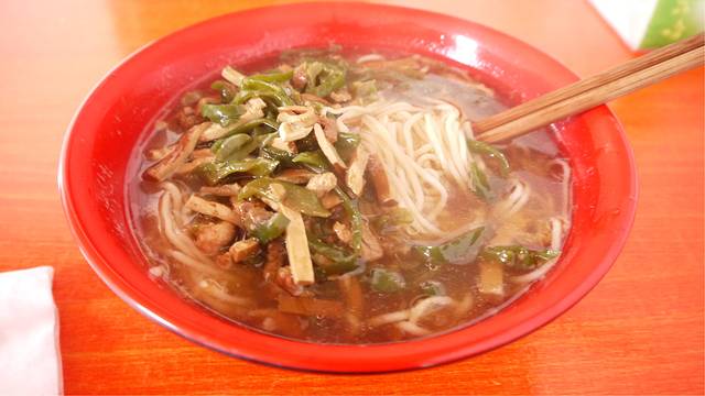 于是,我就很满足的吃了一碗面条,卤子是这里标志性的——青椒肉丝。
