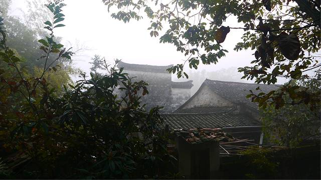 一觉醒来,已经是第二天早上七点半,赶忙推开窗户看传说中的“烟雾氤氲”的景象,真没让我失望,雾气缭绕的山窝中,只有水墨色的房顶是依稀可见的。我瞬间把自己幻想成了生在秀美大山中的奇女子,比如——小龙女(此刻我想起当时的幻想,都开始佩服自己的玛丽苏综合症,算是双鱼座的通病吧)……