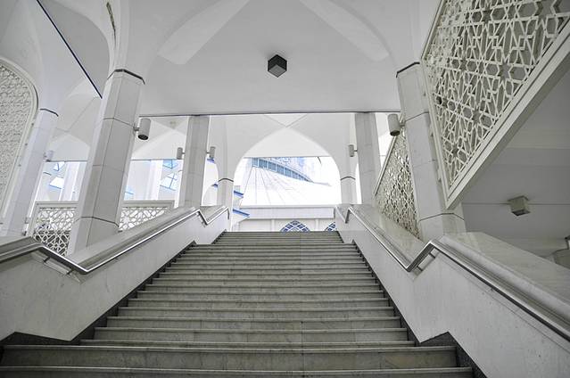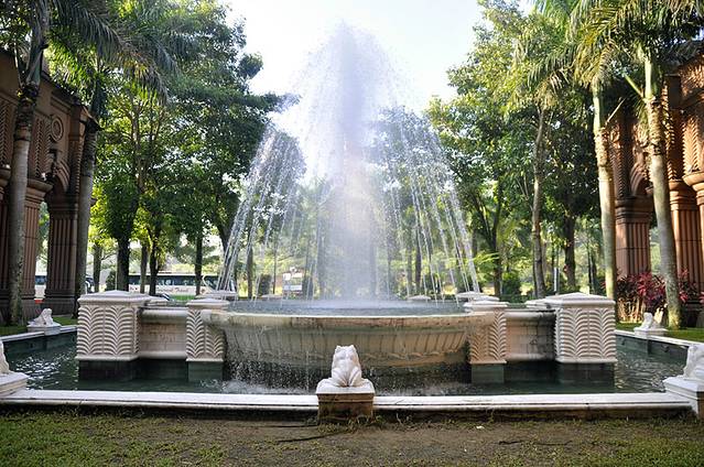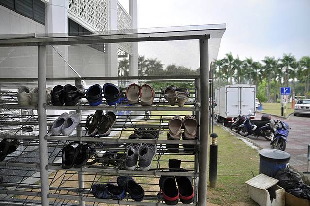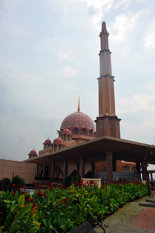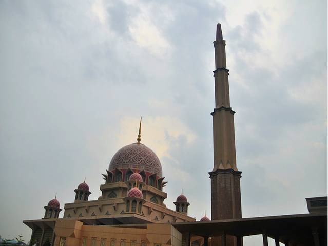 这座粉红清真寺,是布城最大的清真寺,圆拱型的粉红色屋顶,加上整栋建筑物都用粉红色的花岗岩石建造,色调很柔美,虽然离吉隆坡市区有40公里,却吸引了许多的游客前去游览。因为清真寺建造在一个大大的人工湖上,所以当地人也叫它“水上清真寺”。我们去的时候,正赶上里面做礼拜,所以不能进入,所以我们就绕着外面转了一圈。