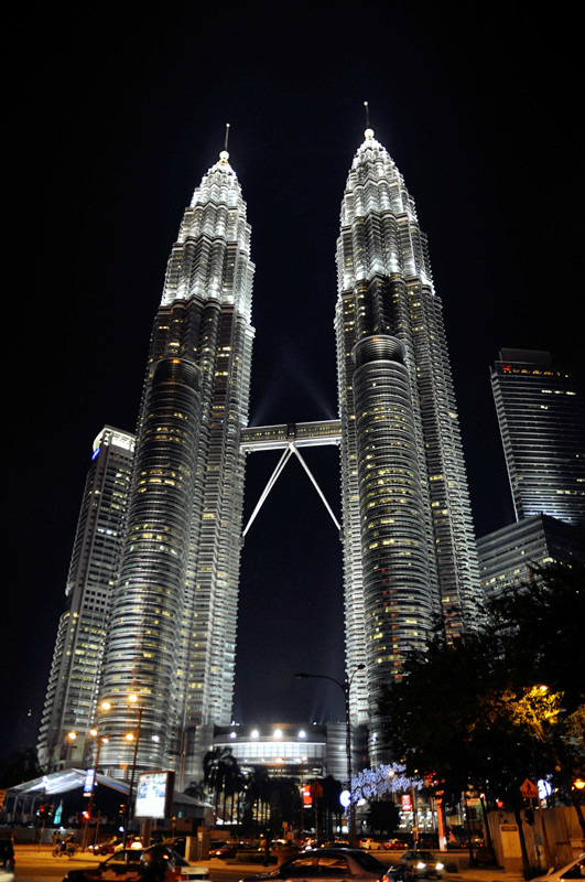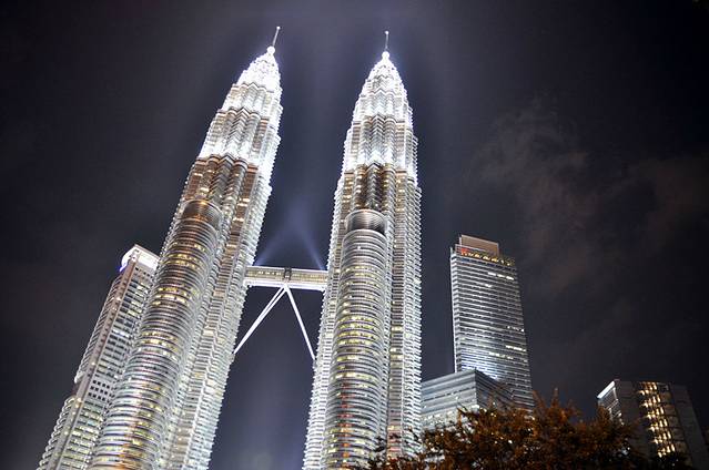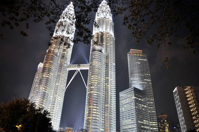 马来西亚首都吉隆坡的双子塔(Petronas Towers)是吉隆坡的标志性城市景观之一,是世界上目前最高的双子楼和第四高的建筑物。是马来西亚经济蓬勃发展的象征。