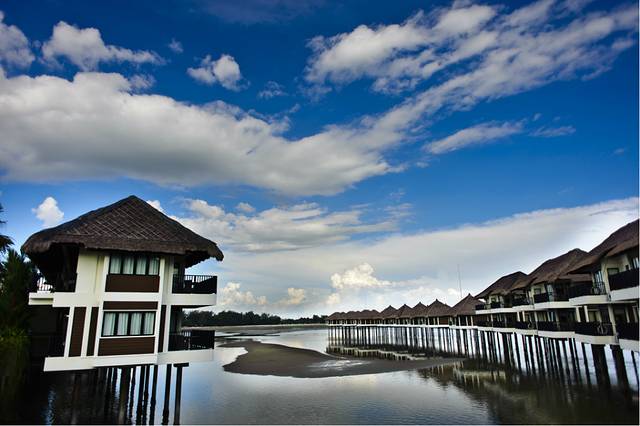 (图片拍摄于 傍晚的雪兰莪州南端雪邦县黄金棕榈海上度假屋)