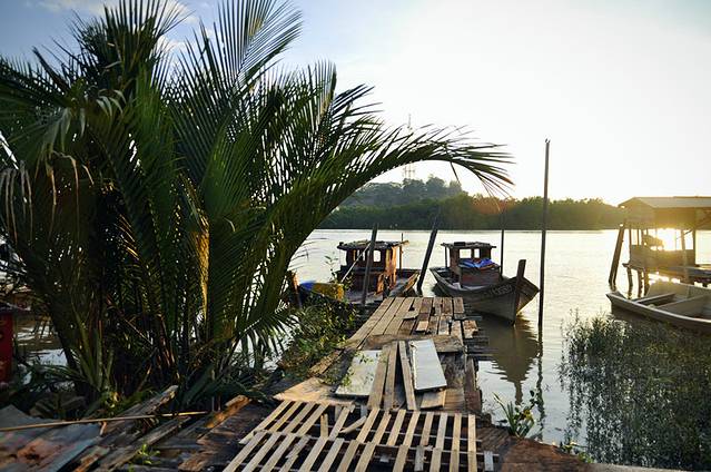 小村沿河而建,与以前见过的所有的渔村都不同。旁边的河,是瓜拉雪兰莪河,一直流向马六甲海峡。于是,村里的渔民可以撑船去那里捕鱼。
