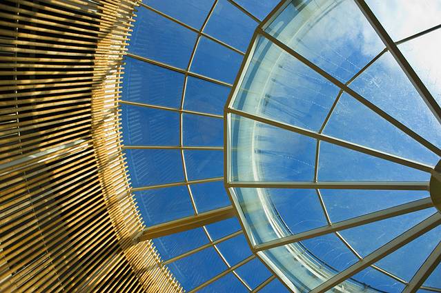 中心地段是一座美轮美奂的建筑物,自然采光的玻璃屋顶不仅能让内部看起来明亮和宽敞,也符合节能环保的概念。