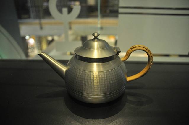 展厅中处处摆放着制作精美的锡器。